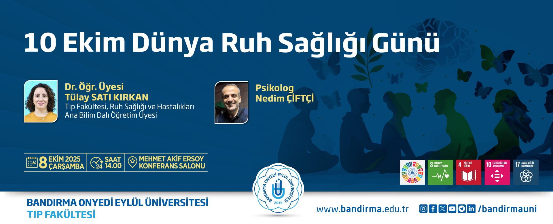 10 Ekim Dünya Ruh Sağlığı Günü kapsamında Fakültemiz tarafından bir etkinlik düzenlenecektir.