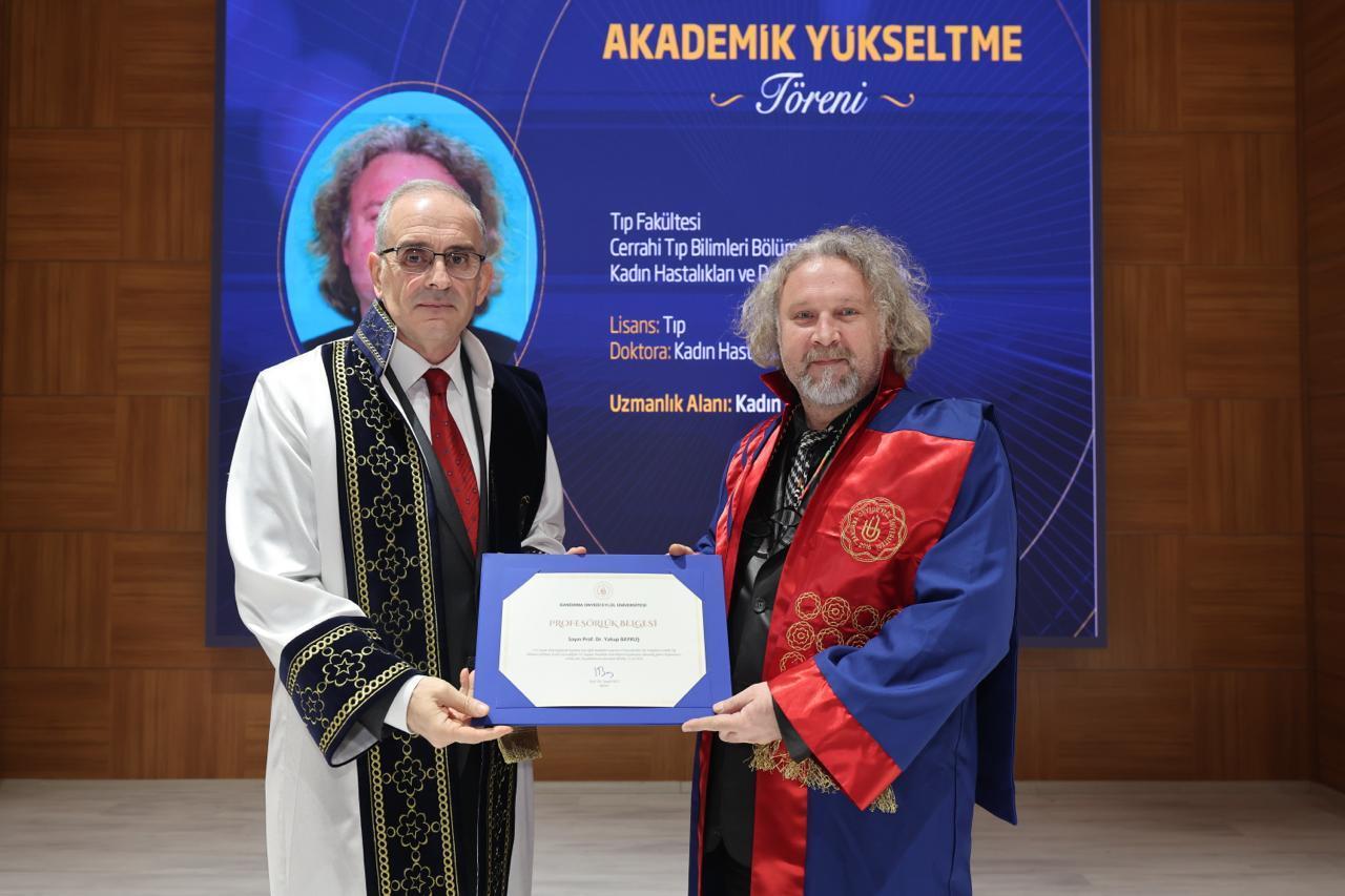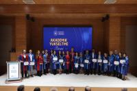 Akademik yükseltme süreci kapsamında ise; 2024 ve 2025 yıllarında profesör, doçent ve dr. öğretim üyesi unvanlarını almaya hak kazanan öğretim üyelerimize belgeleri takdim edildi.