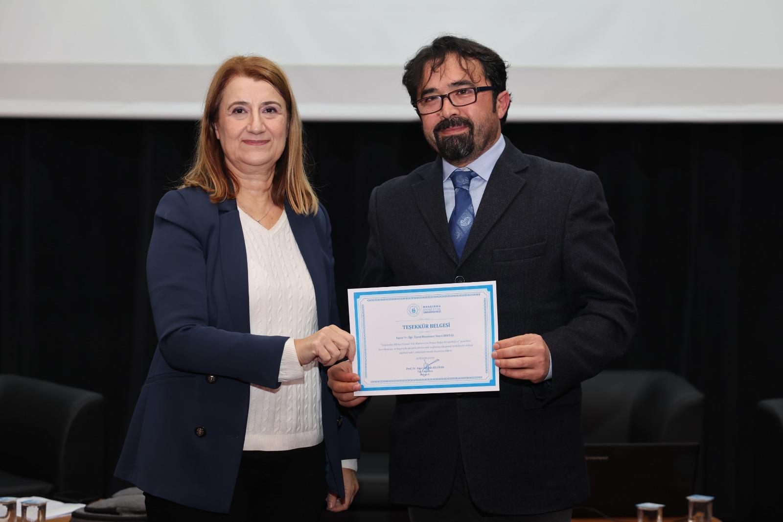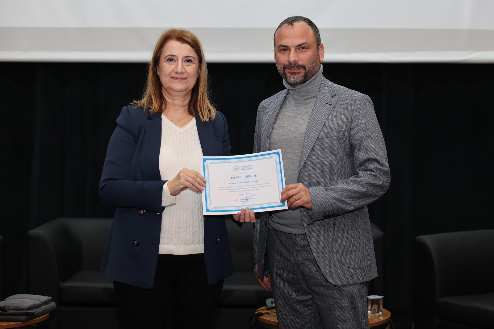 Panelin sonunda Dekanımız Prof. Dr. Ayşe Güldem Kilciler tarafından konuşmacılara teşekkür belgeleri takdim edildi. Etkinlik toplu fotoğraf çekimiyle sona erdi.