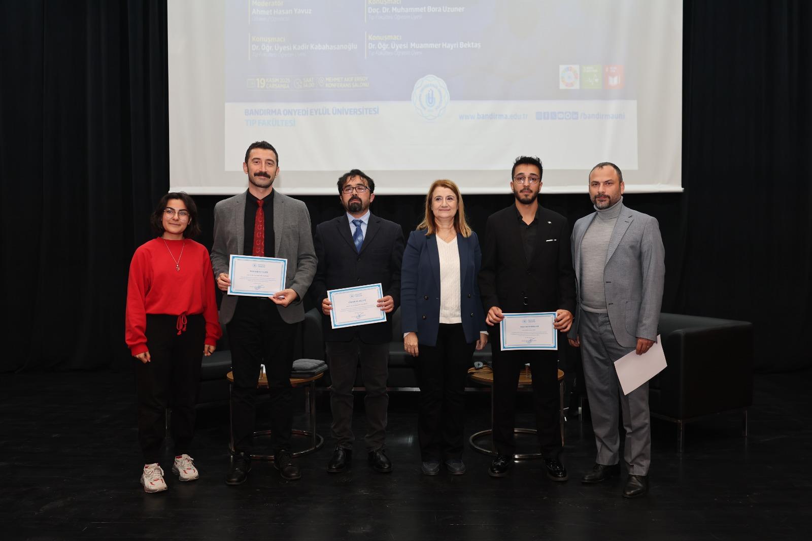 Mehmet Akif Ersoy Konferans Salonu’nda gerçekleştirilen programa Fakültemiz öğretim üyeleri Doç. Dr. Muhammet Bora Uzuner, Dr. Öğr. Üyesi Kadir Kabahasanoğlu ve Dr. Öğr. Üyesi Muammer Hayri Bektaş konuşmacı olarak katıldı. Panelin moderatörlüğünü ise Tıp Öğrencileri Birliği adına Fakültemiz Dönem 2 öğrencisi Ahmet Hasan Yavuz üstlendi.